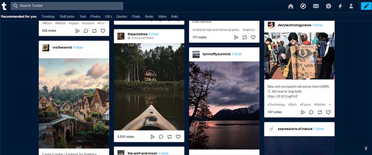 Tumblr is a very powerful micro-blogging platform with the added features of like Facebook, Twitter and messenger with weblog services. So if you are a blogger and don’t have an account and on Tumblr, certainly you are missing a great platform and lot of audience. So make one today. Even if you have good traffic on your current blog or channel use Tumblr to explore more and you can also divert traffic from your Tumblr blog to your already existing blog. So Make an account signup today here at Tumblr.